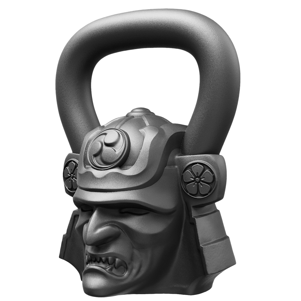 Эта гиря выполнена в виде головы древнего воина в шлеме. Зубы воина злобно оскалены, лицо выражает агрессию и ярость битвы, он в любой момент готов напасть, не ведая ни страха, ни боли. На шлеме изображена трехлучевая свастика, или трискелион — это древний символ удачи и триединства, трех миров: верхнего, нижнего и мира людей. Этот символ дает воину победу иделает его непобедимым в трех мирах, с кем бы он ни сражался, будь то смертные или злые духи. В японской геральдике (Камон) этот символ (Томоэ-мон) обозначает – Вечность. По бокам на шлеме воина изображены цветы (китайский колокольчик - Кикё-мон), они напоминают о том, что воин не бессмысленно жесток — он защищает то, что ему дорого: мирных людей, родную землю и саму жизнь. У самураев это символ постоянства и ответственности. Такая гиря поднимет своим видом боевой дух и даст силы и мужество тренироваться, что бы победить всех! Ведь прежде, чем одержать победу над врагами, воин должен победить самого себя, избавившись от внутренних слабостей с помощью могучей силы воли.