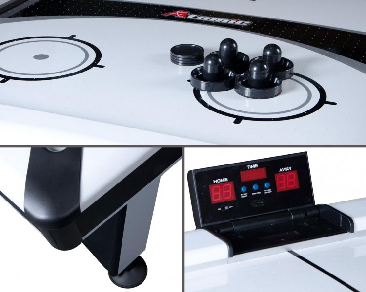 Выполненный из высокопрочных материалов, корпус аэрохоккея Atomic Blazer не боится повреждений и мелких царапин, что прибавляет ему долговечности и надолго сохраняет красивый внешний вид. Игровое поле выполнено из ламинированной древесно-стружечной плиты. Четкие линии и строгие тона не отвлекают от игры и позволяют сконцентрироваться на ней целиком и полностью!