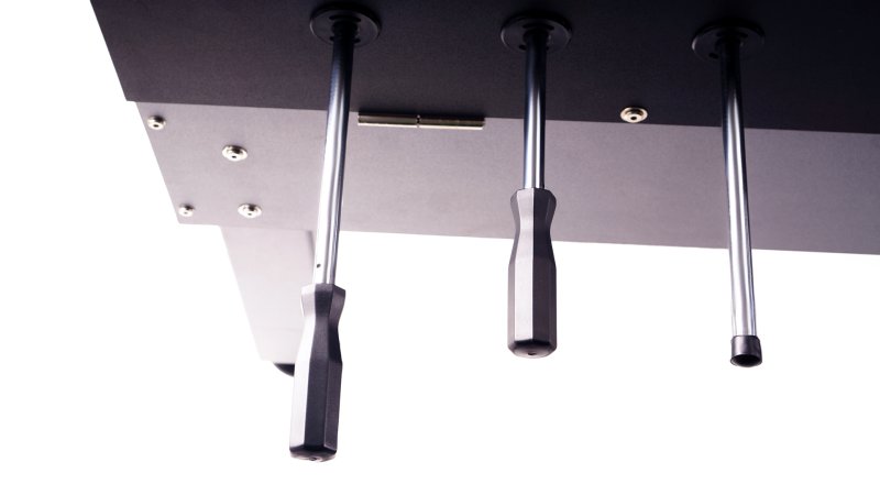 - Амортизация на штангах не только уменьшает уровень шума, но и защищает элементы стола от износа, предоставляя долговечную и стабильную игровую сессию.