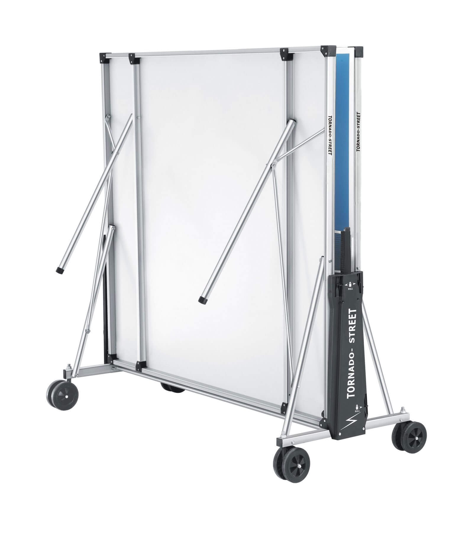 Теннисный стол TORNADO-STREET обладает малым весом благодаря алюминиевому профилю и в то же время прекрасными игровыми характеристиками. Легкая и удобная система фиксации столешниц позволит вам без всяких на то усилий складывать и раскладывать стол, а компактная система складывания стола позволит Вам сэкономить место для его хранения.