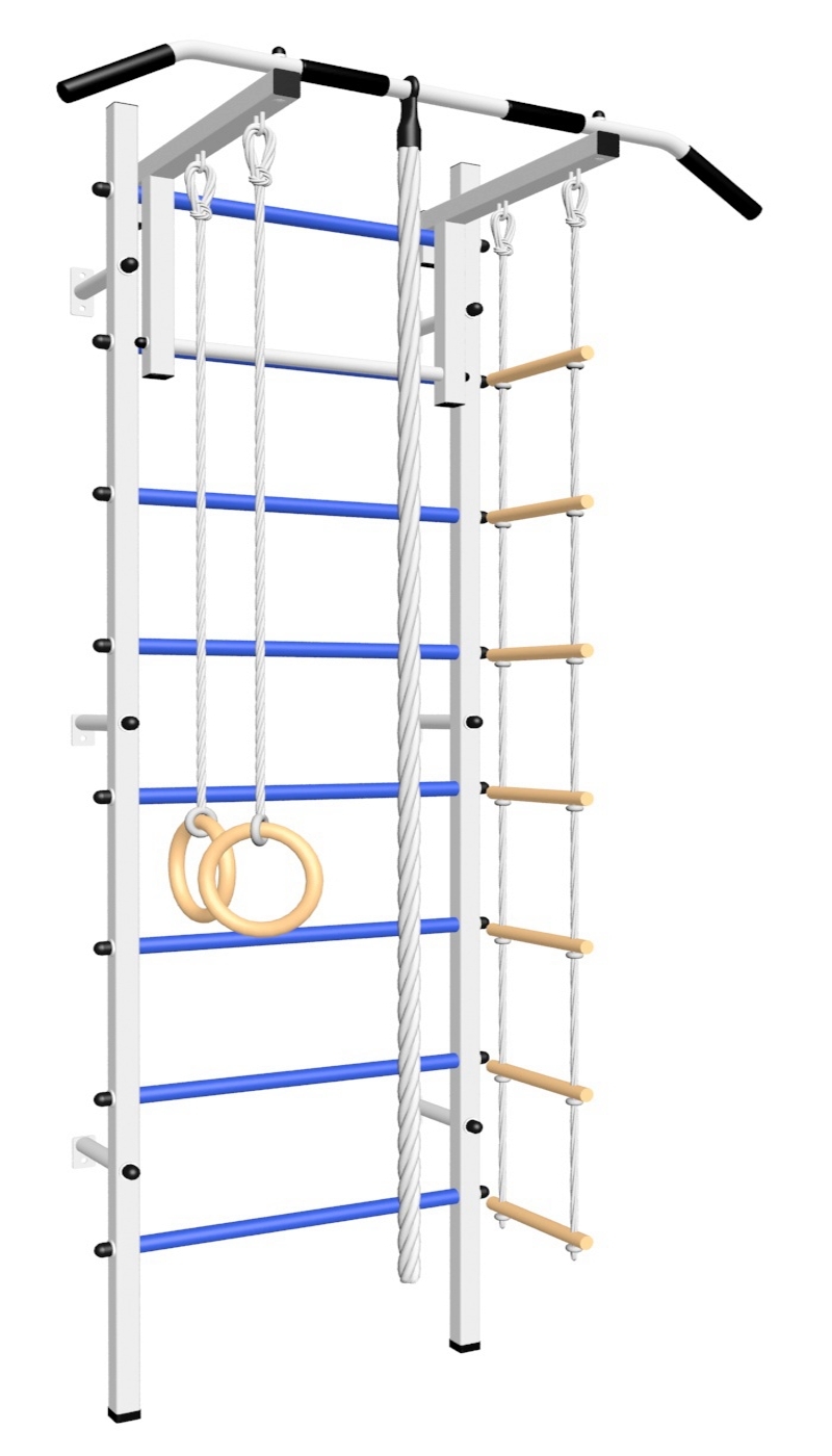 - Комплект: канат с крепежом 2,3 м, кольца гимнастические деревянные, лестница веревочная 350*150*250мм 2,90кг