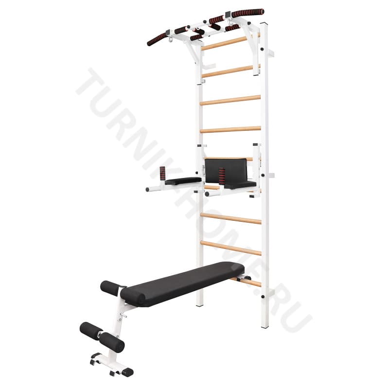 Комбинированный спортивный комплекс - стальные вертикальные стойки и деревянные перекладины. Универсальный домашний тренажер для всей семьи, приспособленный для множества упражнений. Благодаря многофункциональным комплектующим, Вы сможете выполнять комплексные тренировки.