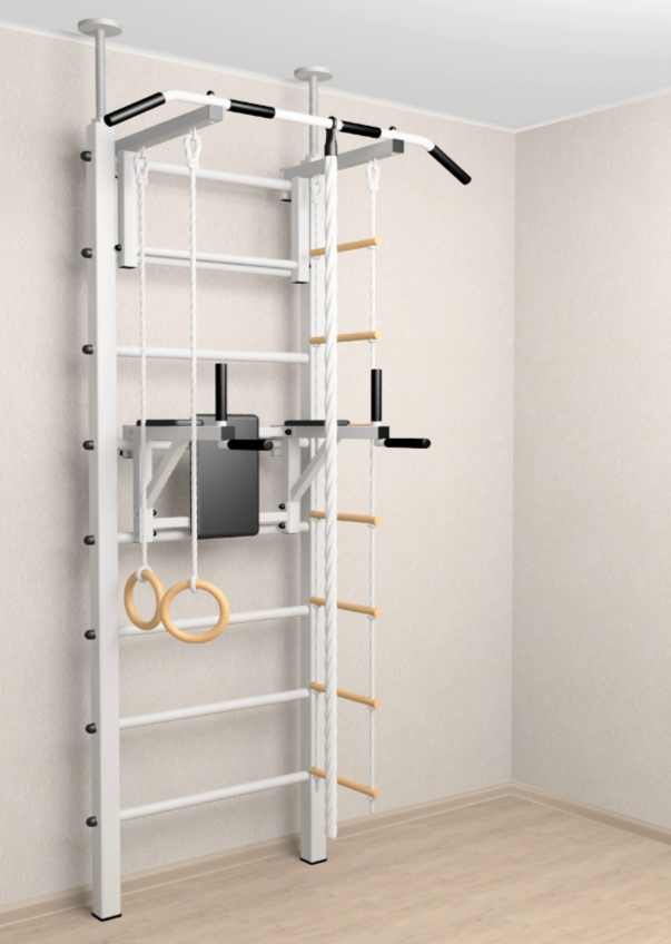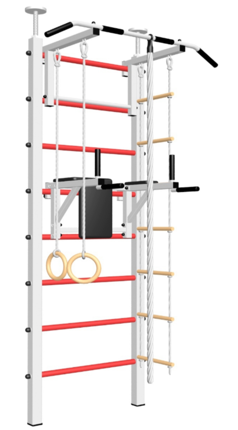 - Комплект: канат с крепежом, кольца гимнастические деревянные, лестница веревочная