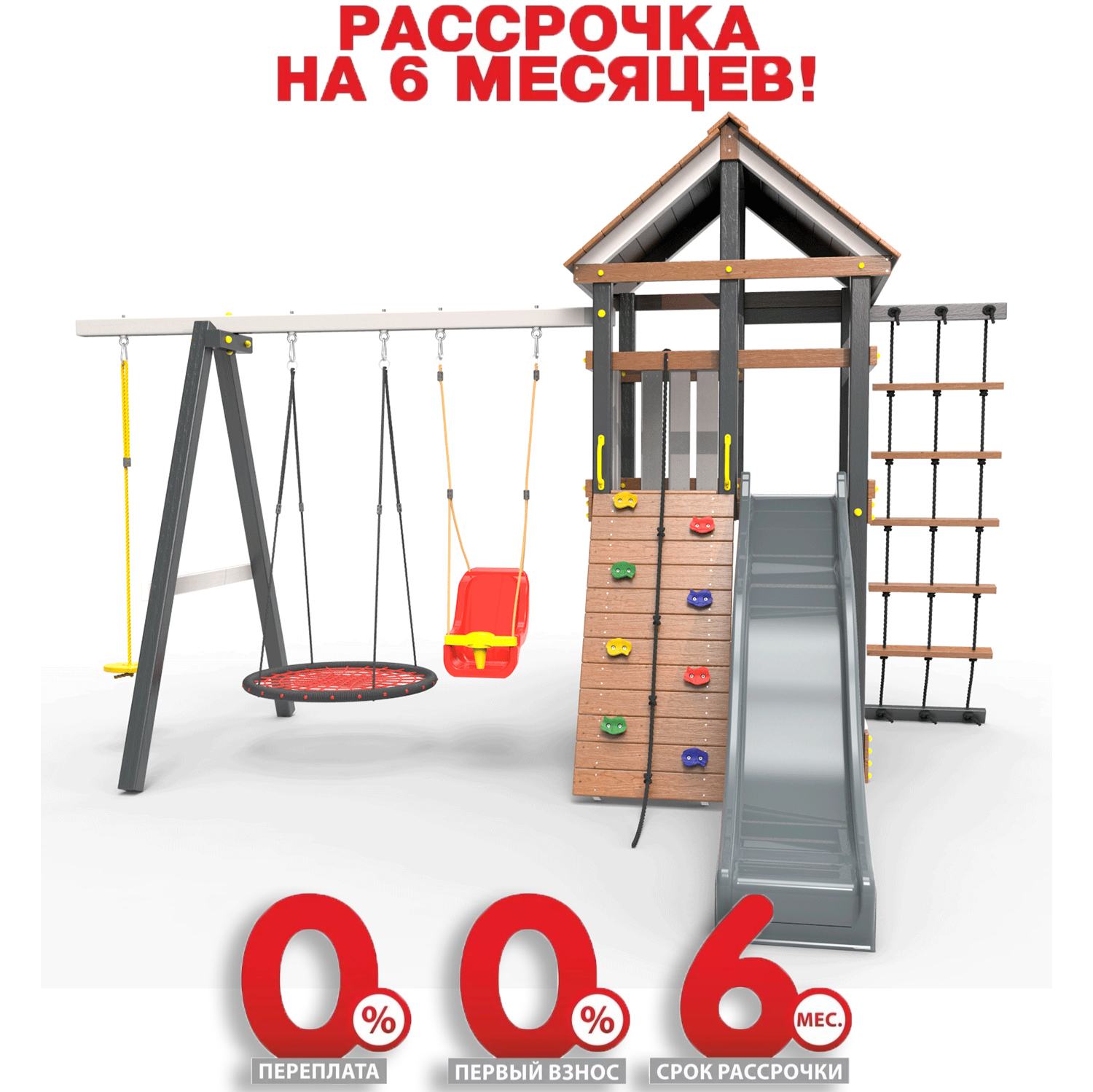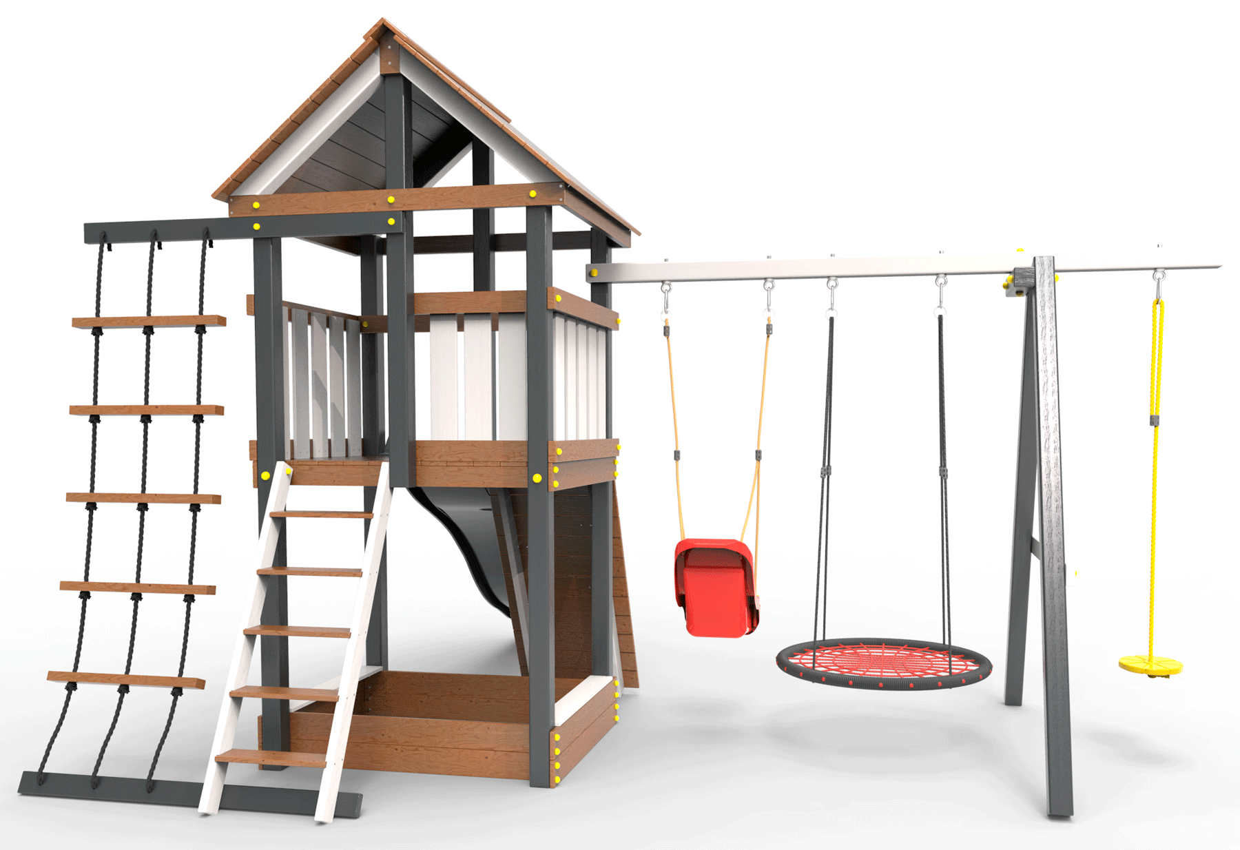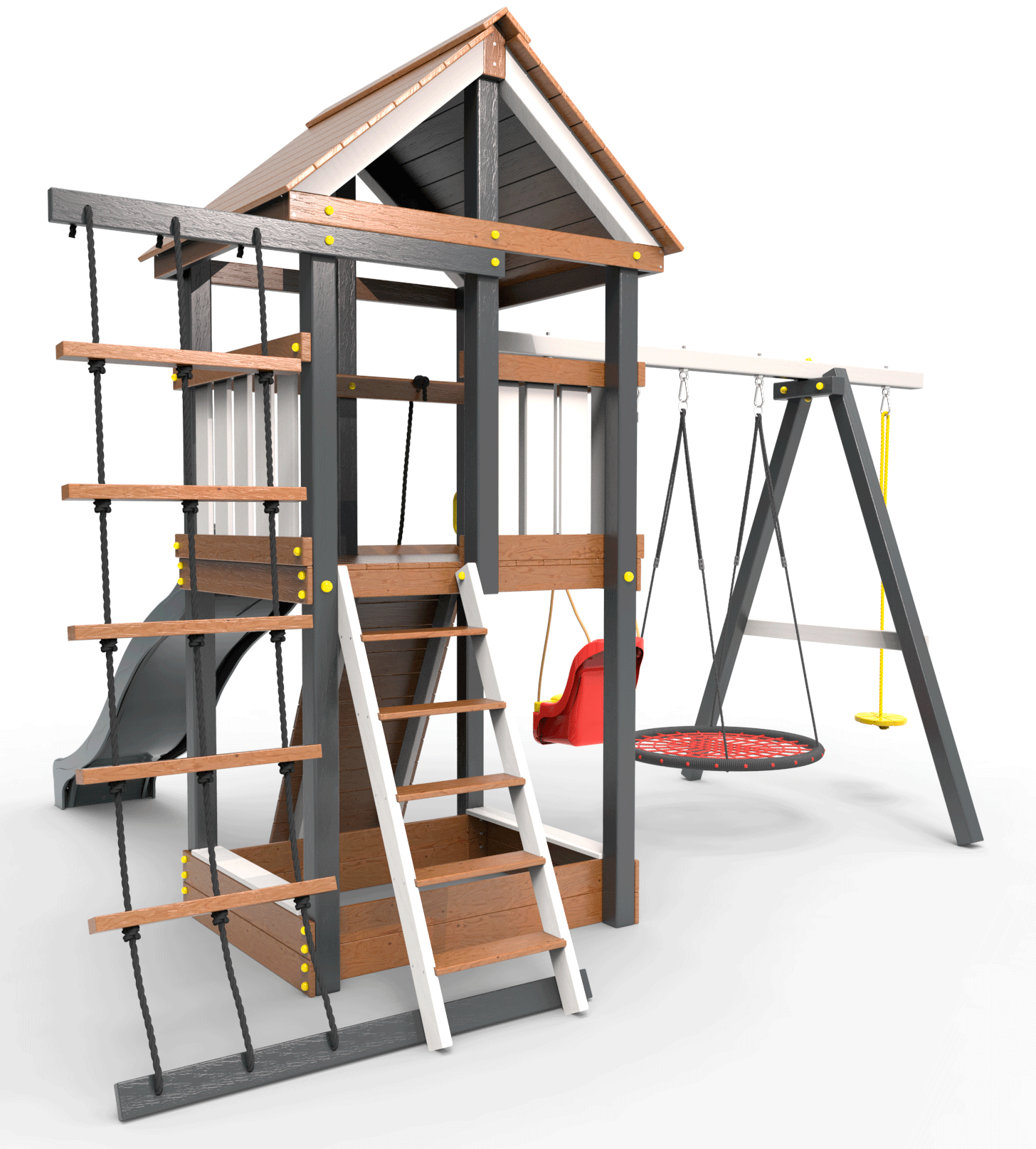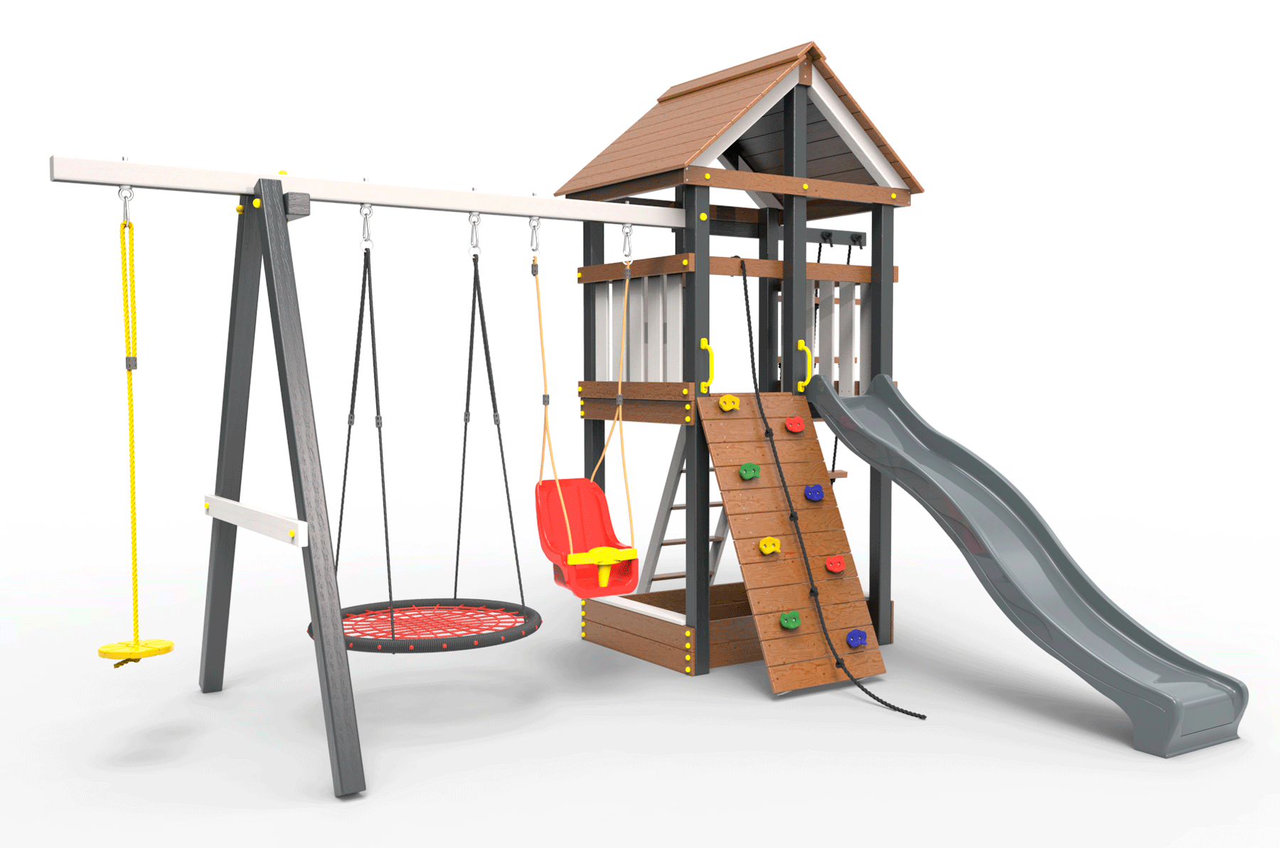 Обращаем Ваше внимание, что фактический цвет детской площадки может отличаться от представленных фото на сайте. Специфика окраски нетоксичными пропитками и красителями допускает отклонения в цветовой гамме отгружаемых изделий. Также обратите внимание, что фактический цвет может отличаться из-за цветопередачи устройства на котором Вы смотрите фото.