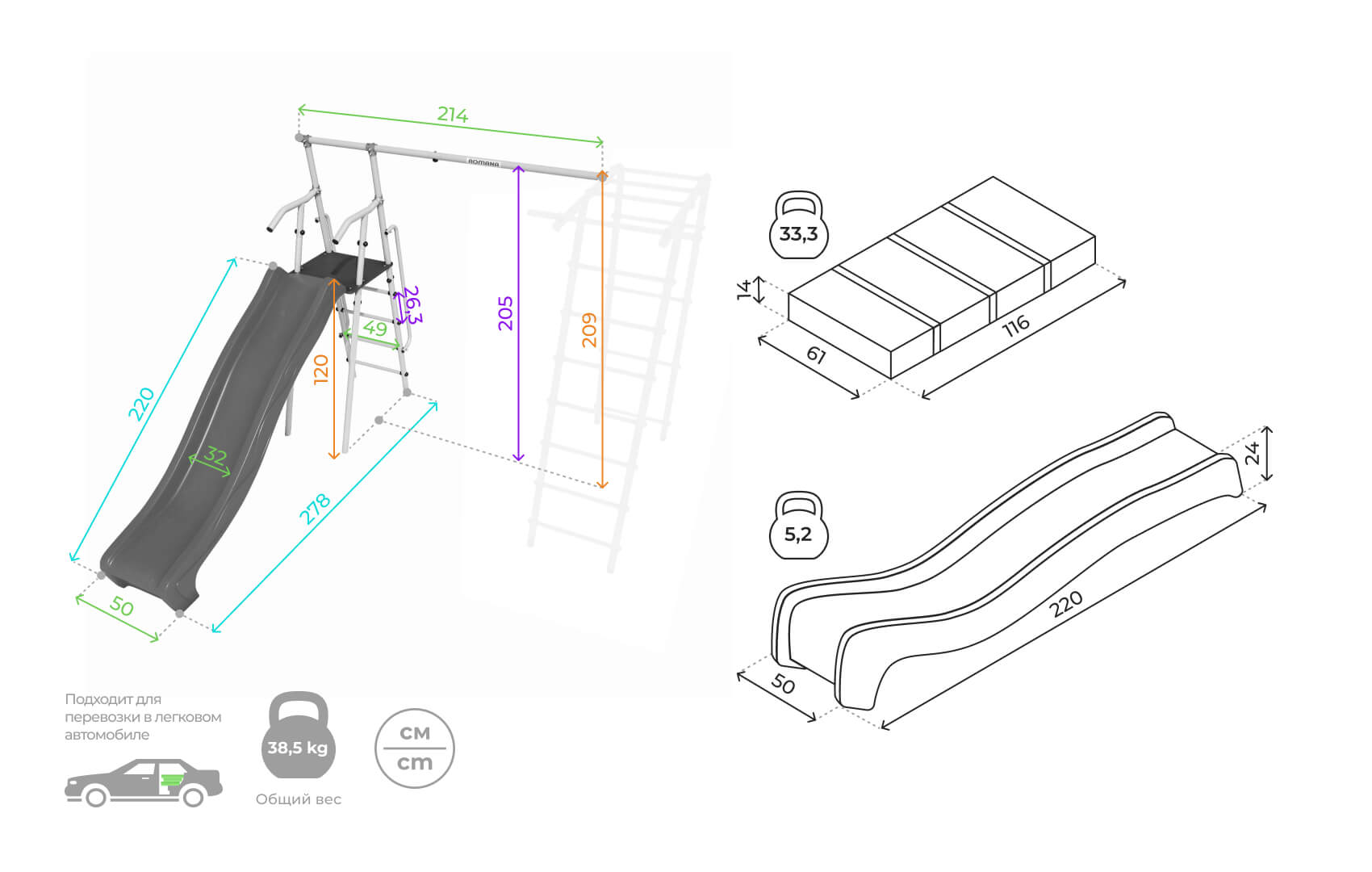 Высота горки, см 120