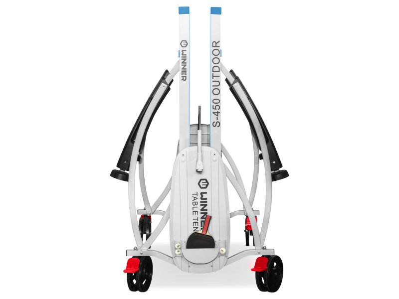 Композитная плита отвечает за высокую устойчивость к наиболее критичным условиям на открытом воздухе. Теннисный стол Winner S-450 не выгорает от солнца, не размокает от осадков, не чувствителен к воздействию плесени. Его можно оставить на улице на всё лето. Однако на зиму изделие нужно убрать в помещение.